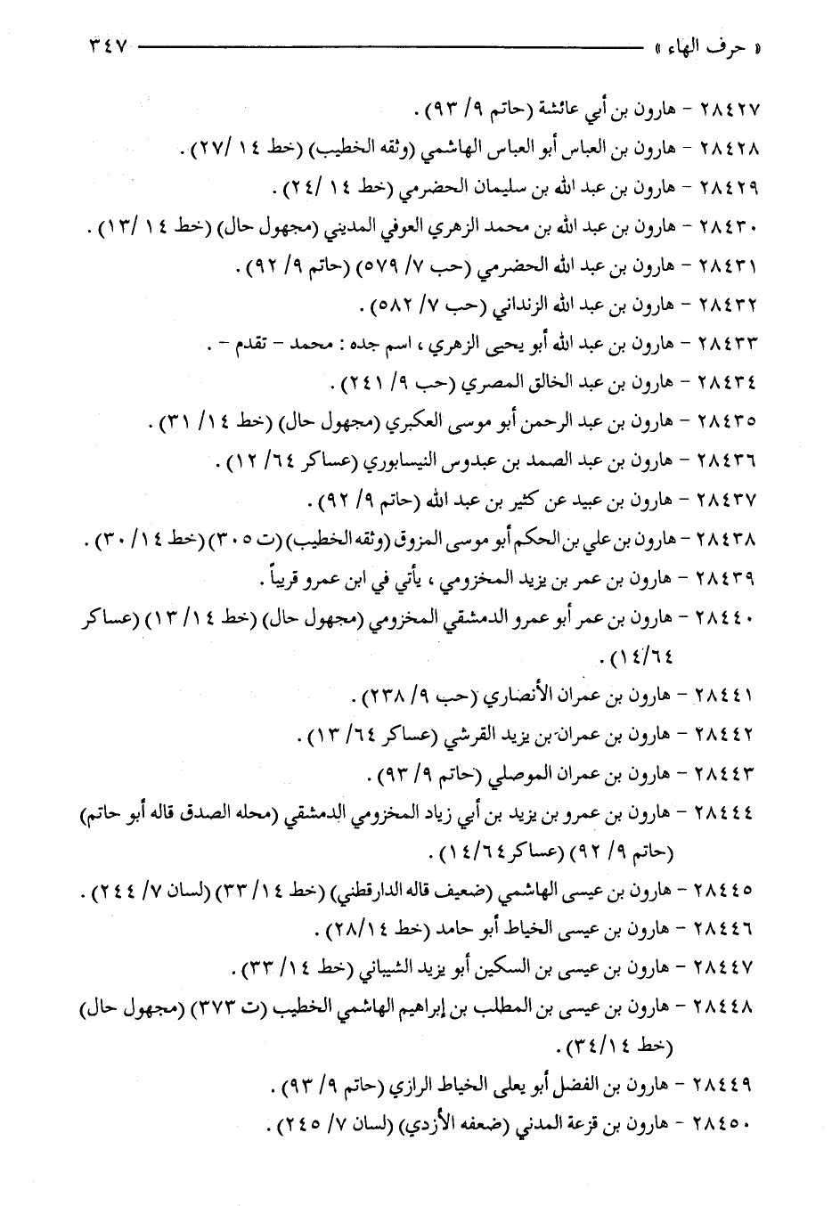 28428 - هارون بن العباس أبو العباس الهاشمي (وثقه الخطيب) (خط 14/ 27).