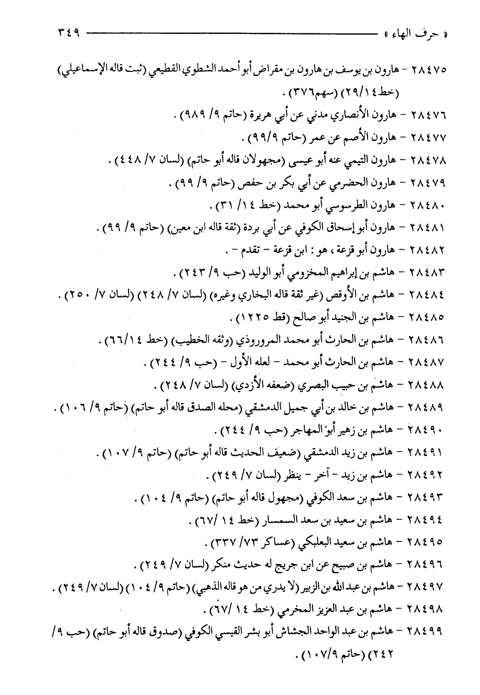 28475 - هارون بن يوسف بن هارون بن مقراض أبو أحمد الشطوي القطيعي (ثبت قاله الإسماعيلي) (خط 14/ 29) (سهم 376).