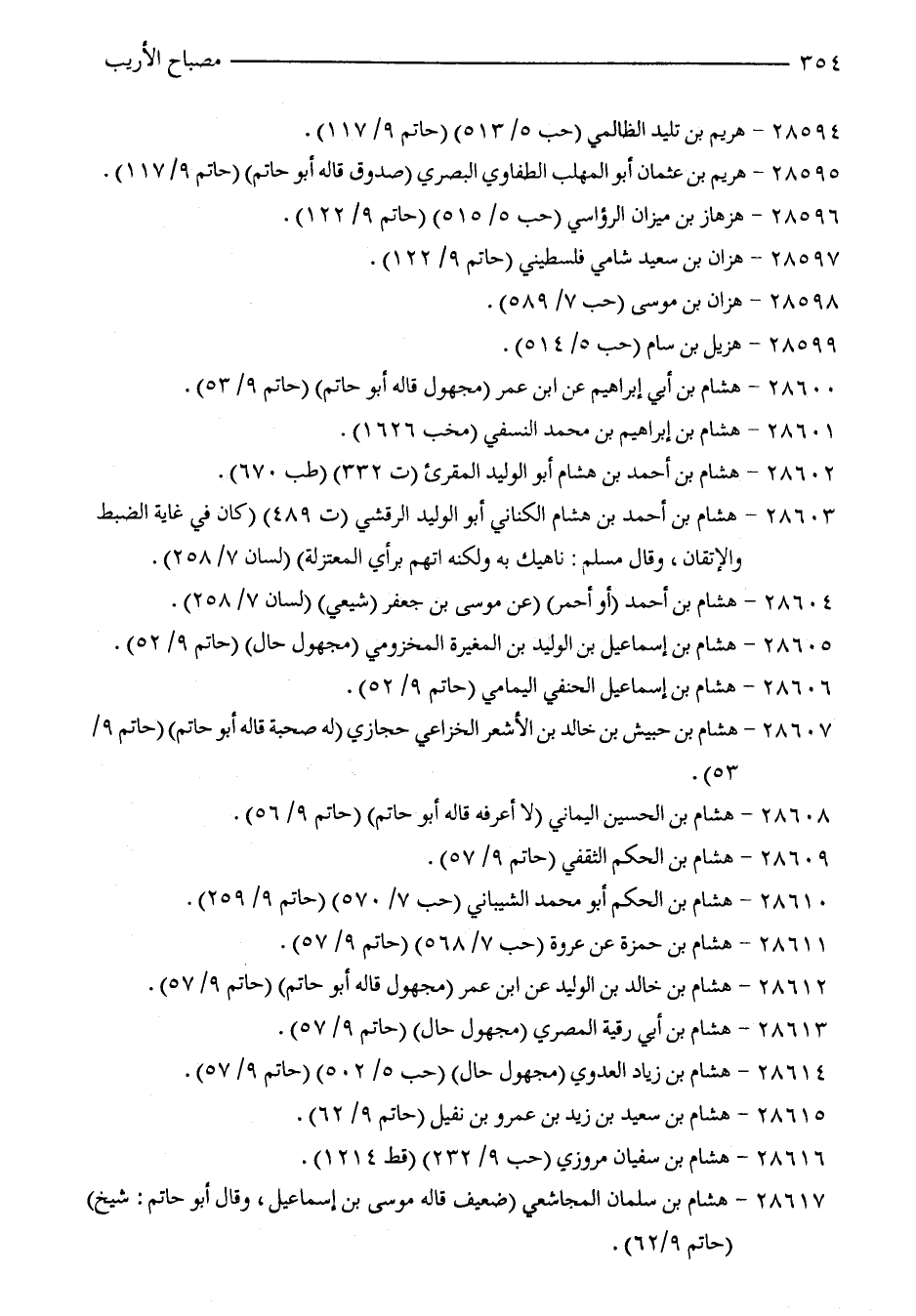 28604 - هشام بن أحمد (أو أحمر) (عن موسى بن جعفر (شيعي) (لسان 7/ 258).