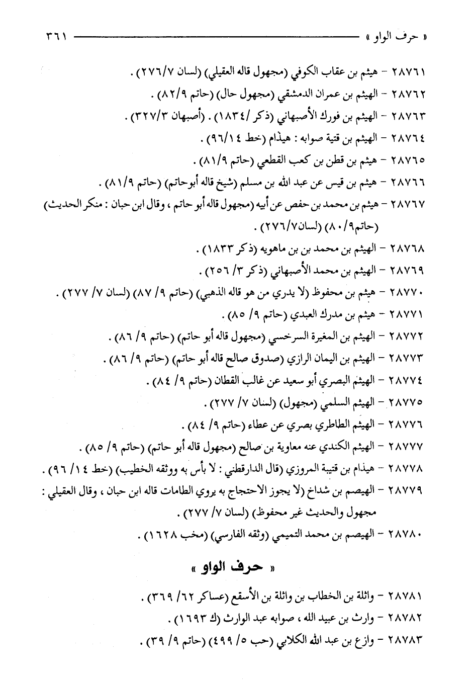 28761 - هيثم بن عقاب الكوفي (مجهول قاله العقيلي) (لسان 7/ 276).