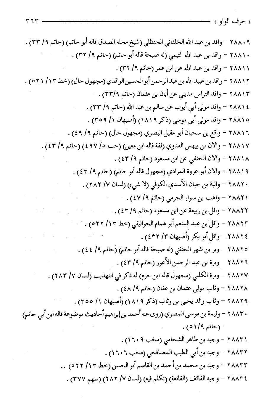 28826 - وبرة بن عبد الرحمن الأعور (حاتم 9/ 43).