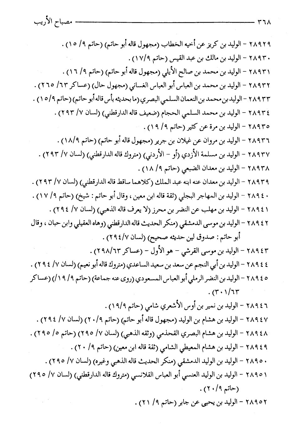 28947 - الوليد بن هشام بن الوليد (مجهول قاله أبو حاتم) (حاتم 9/ 20) (لسان 7/ 294).