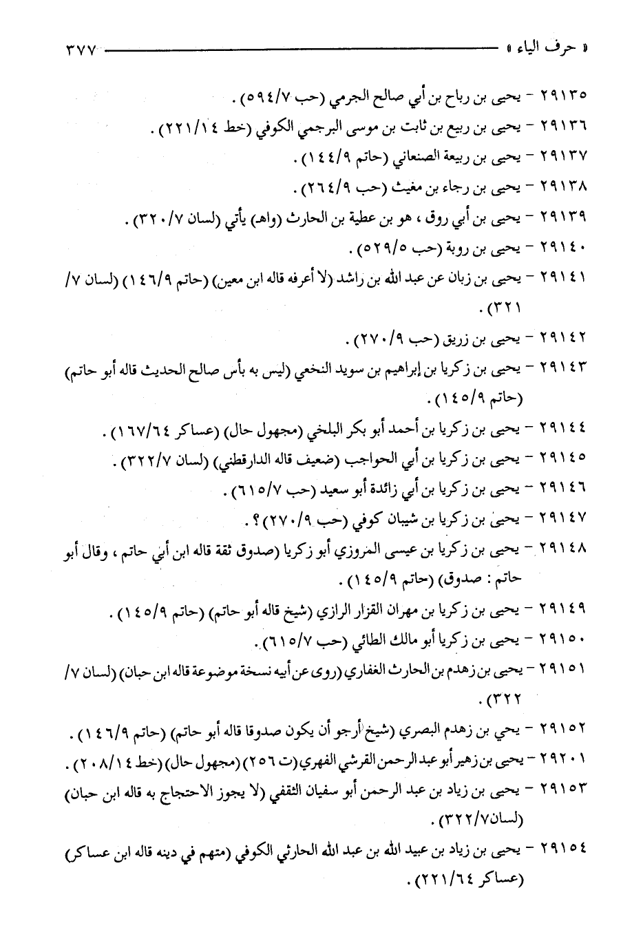 29145 - يحيى بن زكريا بن أبي الحواجب (ضعيف قاله الدارقطني) (لسان 7/ 322).