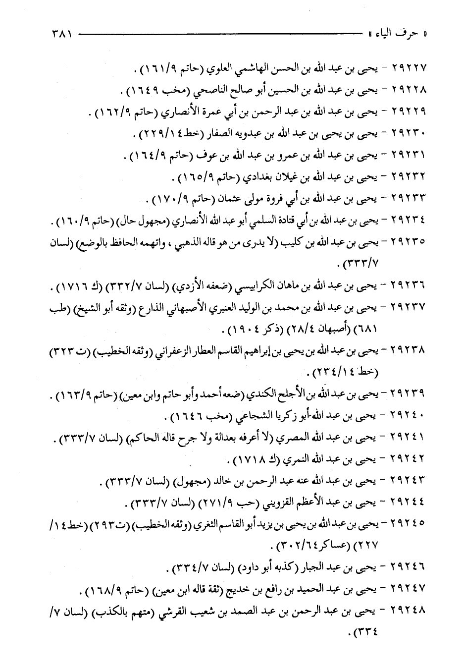 29227 - يحيى بن عبد الله بن الحسن الهاشمي العلوي (حاتم 9/ 161).