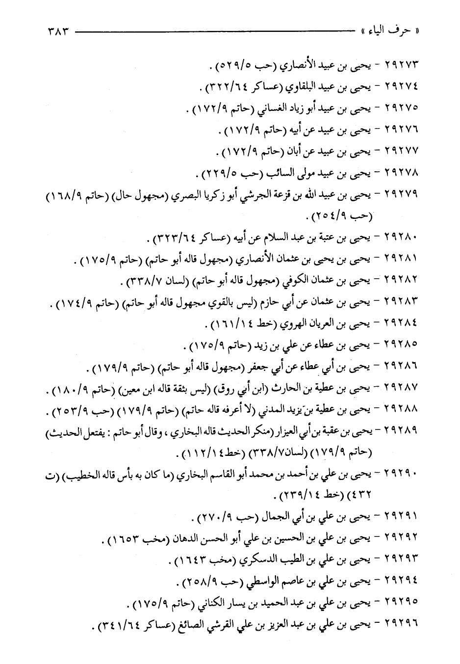 29274 - يحيى بن عبيد البلقاوي (عساكر 64/ 322).