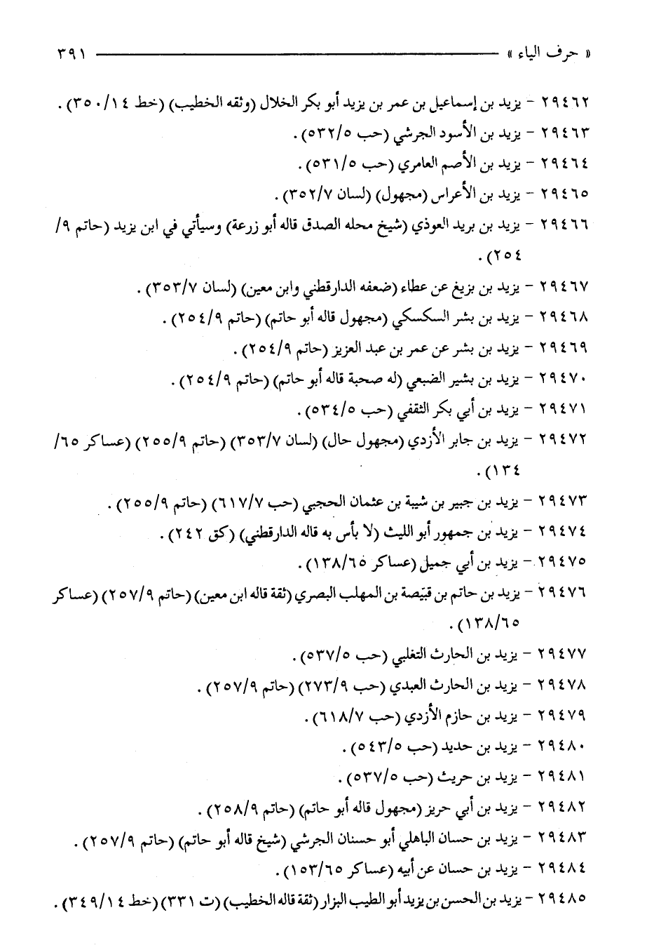 29472 - يزيد بن جابر الأزدي (مجهول حال) (لسان 7/ 353) (حاتم 9/ 255) (عساكر 65/