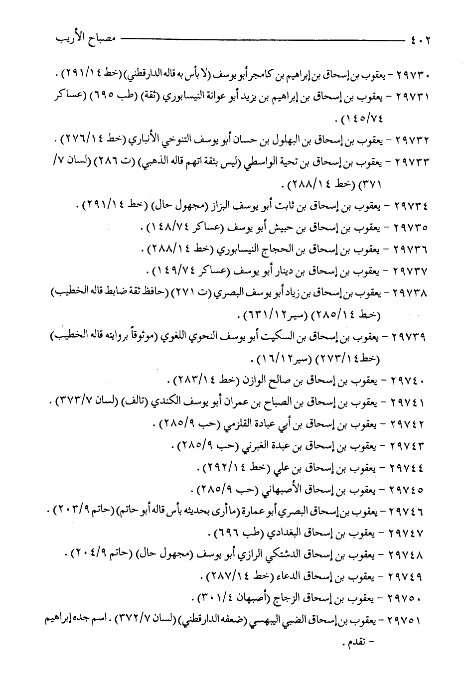 29739 - يعقوب بن إسحاق بن السكيت أبو يوسف النحوي اللغوي (موثوقًا بروايته قاله الخطيب) (خط 14/ 273) (سير 12/ 16).