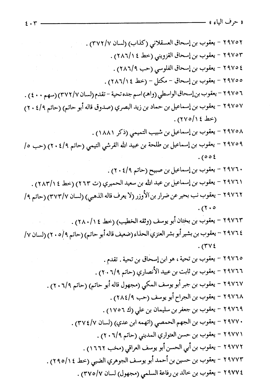 29761 - يعقوب بن إسماعيل بن عبد الله بن سعيد الحميري (ت 263) (خط 14/ 283).