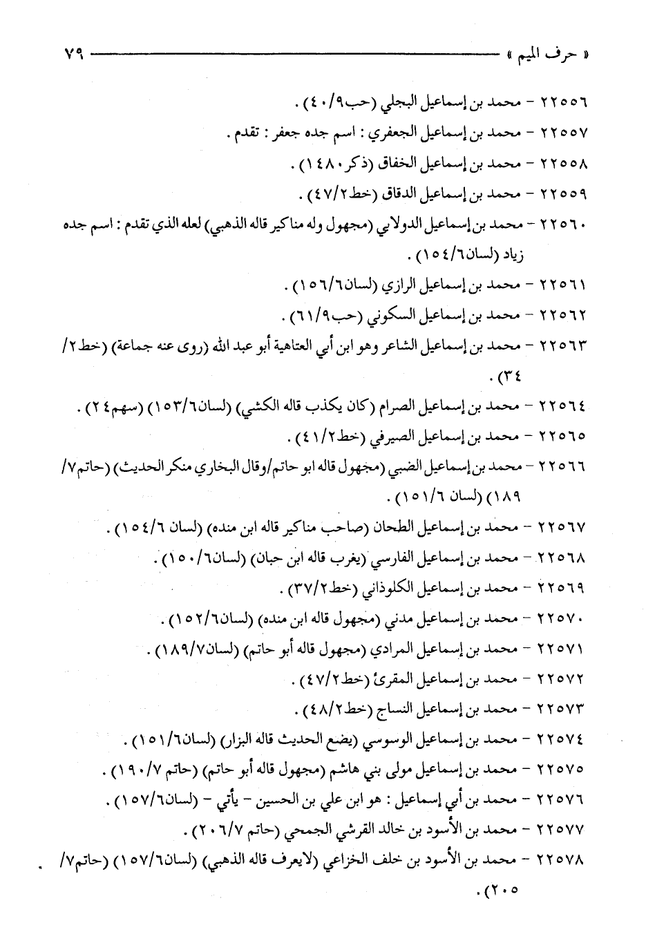 22568 - محمد بن إسماعيل الفارسي (يغرب قاله ابن حبان) (لسان 6/ 150).