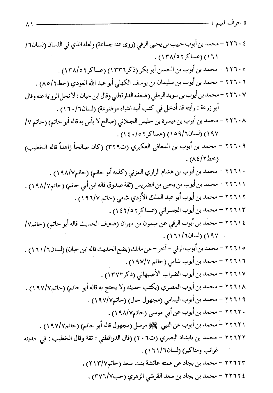 22614 - محمّد بن أيوب الرقي عن ميمون بن مهران (ضعيف الحديث قاله أبو حاتم) (حاتم 7/ 197) (لسان 6/ 161).