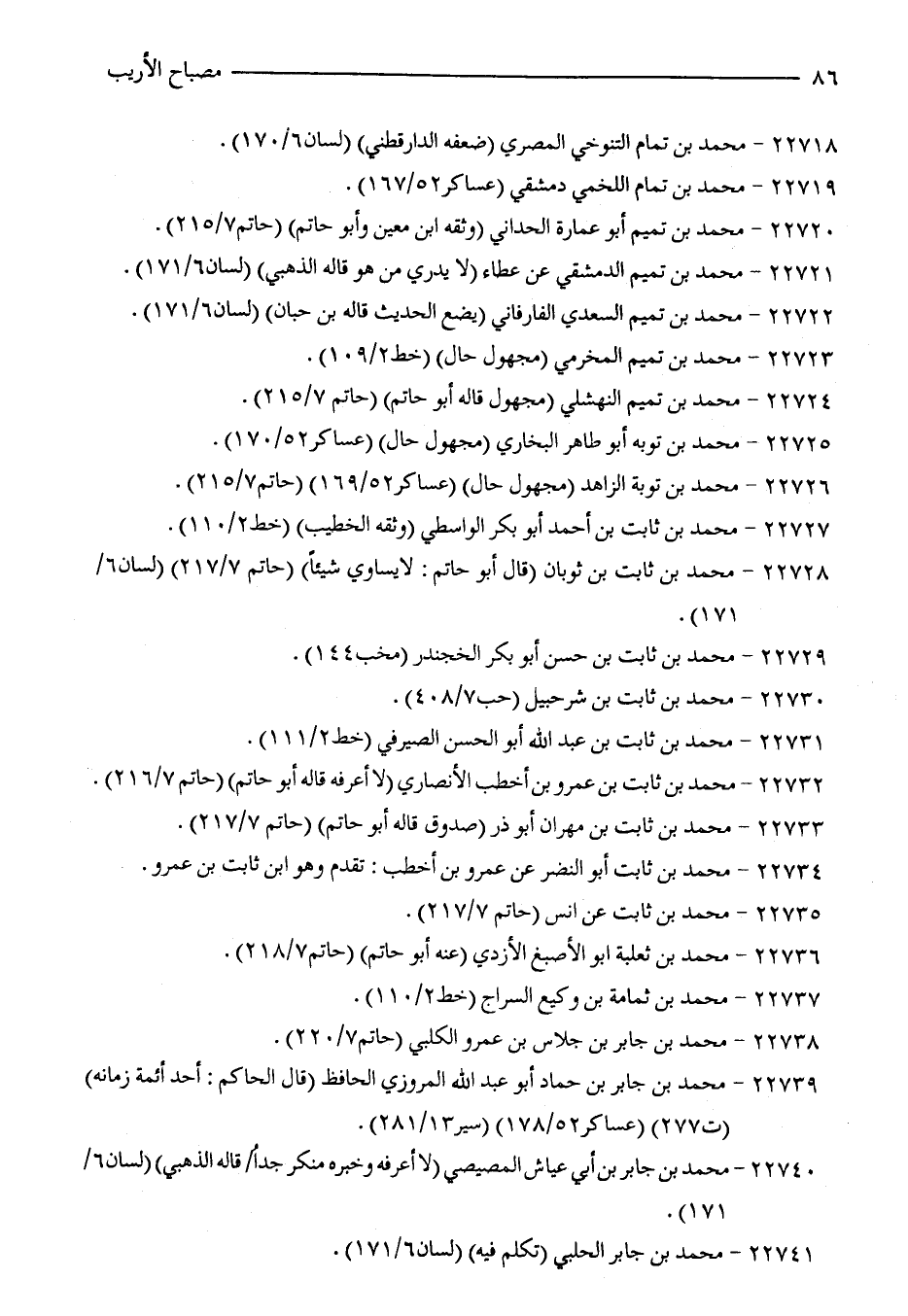 22726 - محمد بن توبة الزاهد (مجهول حال) (عساكر 52/ 169) (حاتم 7/ 215).
