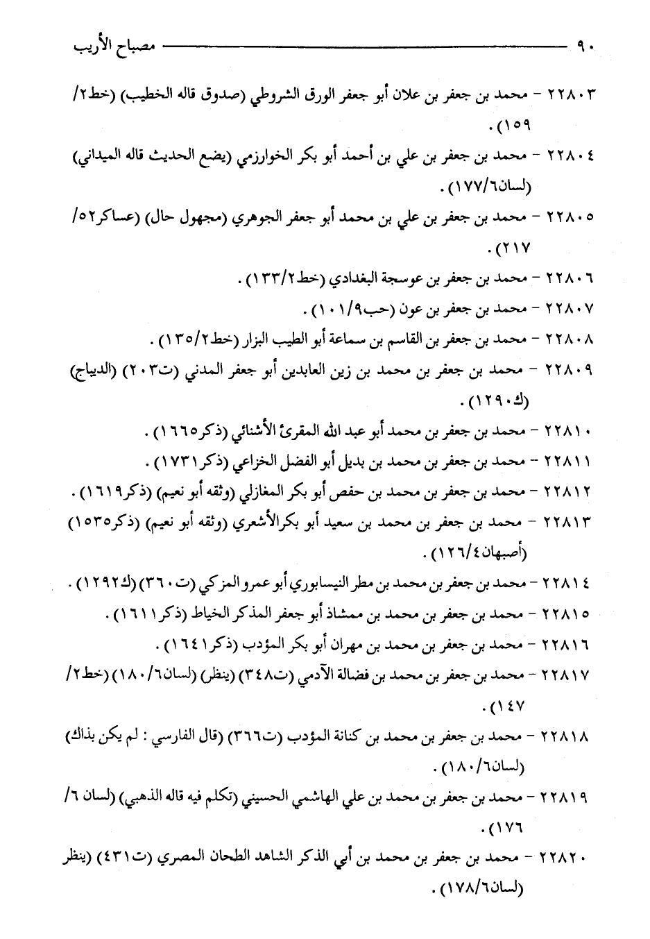 22818 - محمد بن جعفر بن محمد بن كنانة المؤدب (ت 366) (قال الفارسي: لم يكن بذاك) (لسان 6/ 180).