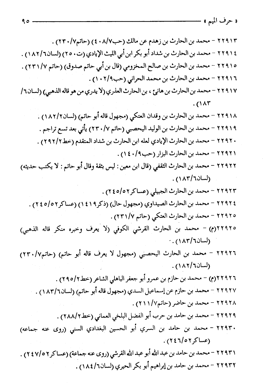 22919 - محمد بن الحارث بن الوليد اليحصبي (حاتم 7/ 230) يأتي بعد تسع تراجم.
