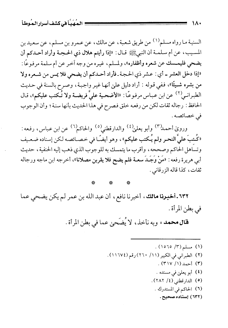 632 - أخبرنا مالك، أخبرنا نافع، أن عبد الله بن عمر لم يكن يضحي عما في بطن المرأة.