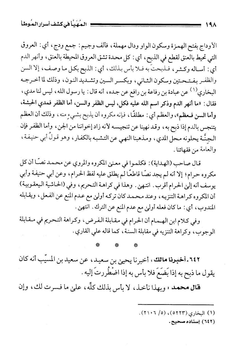 642 - أخبرنا مالك، أخبرنا يحيى بن سعيد، عن سعيد بن المسيّب أنه كان يقول ما ذبح به إذا بَضَعَ فلا بأس به إذا اضْطُررتَ إليه.