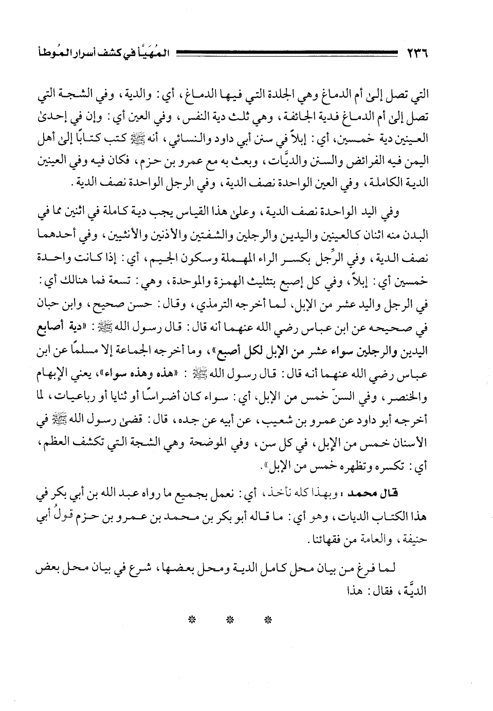 قال محمد: وبكذا كله نأخذ، أي: نعمل بجميع ما رواه عبد الله بن أبي بكر في هذا الكتاب الديات، وهو أي: ما قاله أبو بكر بن محمد بن عمرو بن حزم قولُ أبي حنيفة، والعامة من فقهائنا.