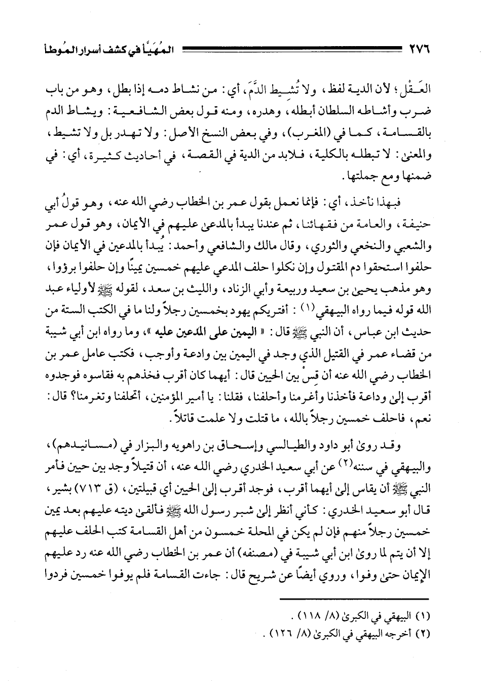 وقد روى أبو داود والطيالسي وإسحاق بن راهويه والبزار في (مسانيدهم)، والبيهقي في سننه (¬2) عن أبي سعيد الخدري رضي الله عنه، أن قتيلًا وجد بين حيين فأمر النبي - صلى الله عليه وسلم - أن يقاس إلى أيهما أقرب، فوجد أقرب إلى الحيين أي قبيلتين، (ق 713) بشير، قال أبو سعيد الخدري: كأني أنظر إلى شبر رسول الله - صلى الله عليه وسلم - فألقى ديته عليهم بعد يمين خمسين رجلًا منهم فإن لم يكن في المحلة خمسون من أهل القسامة كتب الحلف عليهم إلا أن يتم لما روى ابن أبي شيبة في (مصنفه) أن عمر بن الخطاب رضي الله عنه رد عليهم الإِيمان حتى وفوا، وروي أيضًا عن شريح قال: جاءت القسامة فلم يوفوا خمسين فردوا