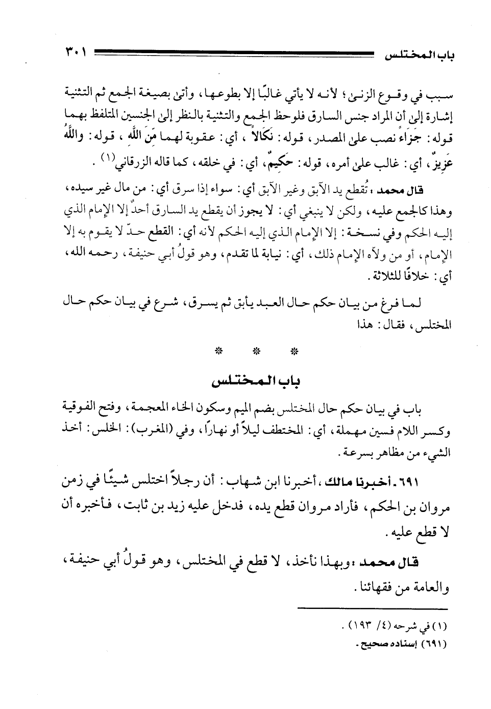 691 - أخبرنا مالك، أخبرنا ابن شهاب: أن رجلًا اختلس شيئًا في زمن مروان بن الحكم، فأراد مروان قطع يده، فدخل عليه زيد بن ثابت، فأخبره أن لا قطع عليه.