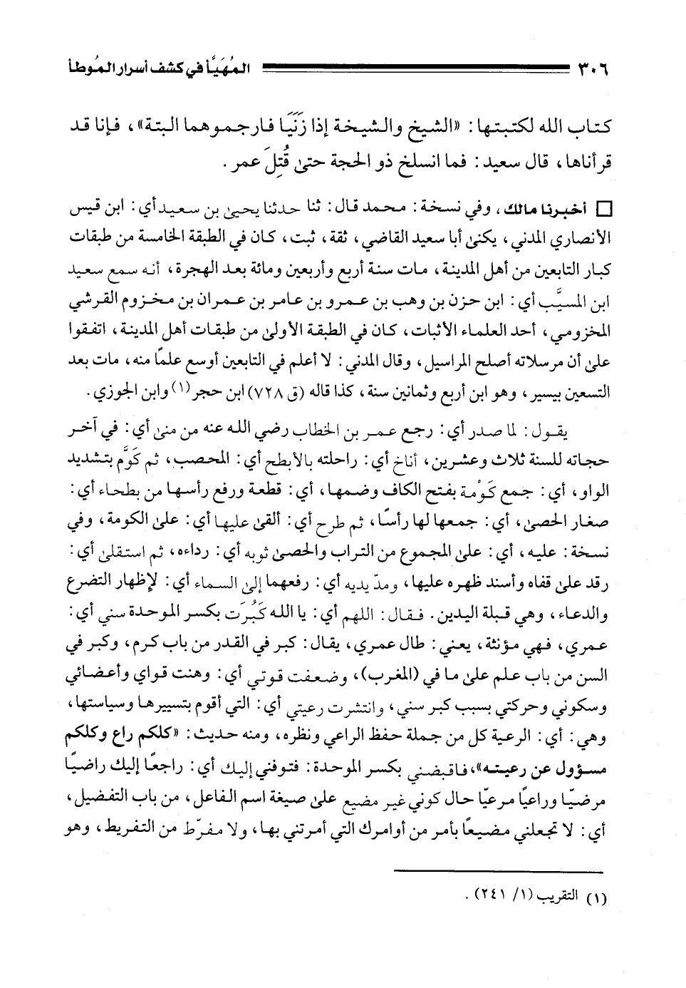 كتاب الله لكتبتها: "الشيخ والشيخة إذا زَنَيَا فارجموهما البتة"، فإنا قد قرأناها، قال سعيد: فما انسلخ ذو الحجة حتى قُتِلَ عمر.