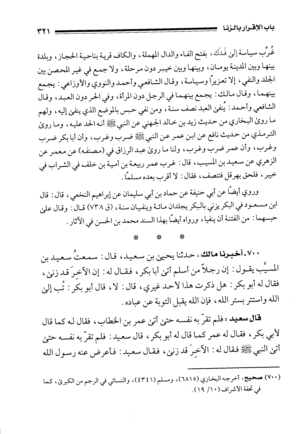 (700) صحيح، أخرجه البخاري (6815)، ومسلم (4341)، والنسائي في الرجم من الكبرى، كما في تحفة الأشراف (10/ 19).