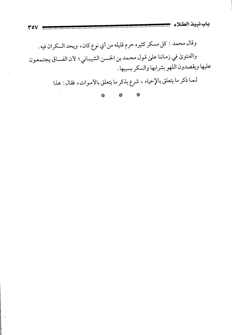 وقال محمد: كل مسكر كثيره حرم قليله من أي نوع كان، ويحد السكران فيه.