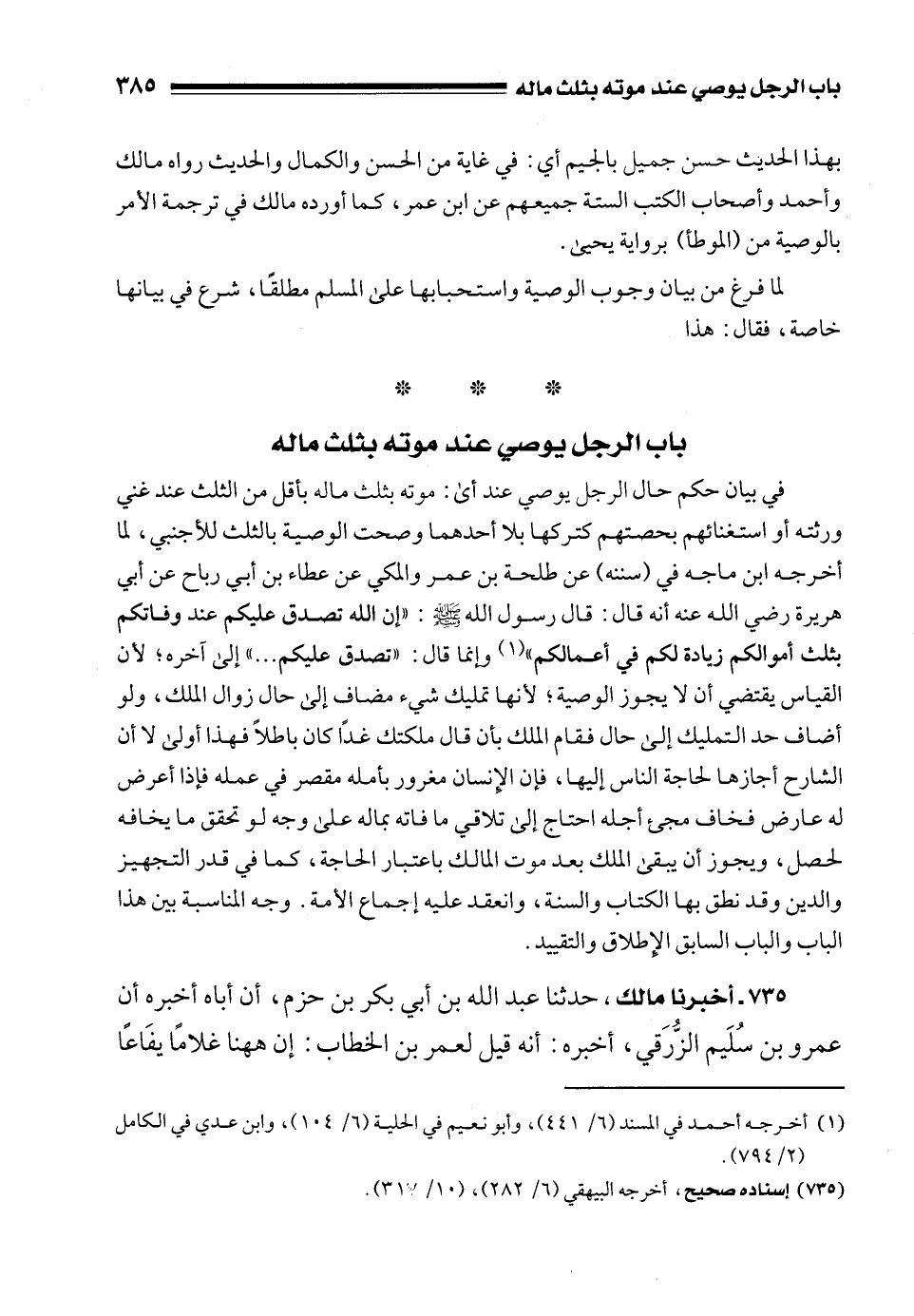 بهذا الحديث حسن جميل بالجيم أي: في غاية من الحسن والكمال والحديث رواه مالك وأحمد وأصحاب الكتب الستة جميعهم عن ابن عمر، كما أورده مالك في ترجمة الأمر بالوصية من (الموطأ) برواية يحيى.