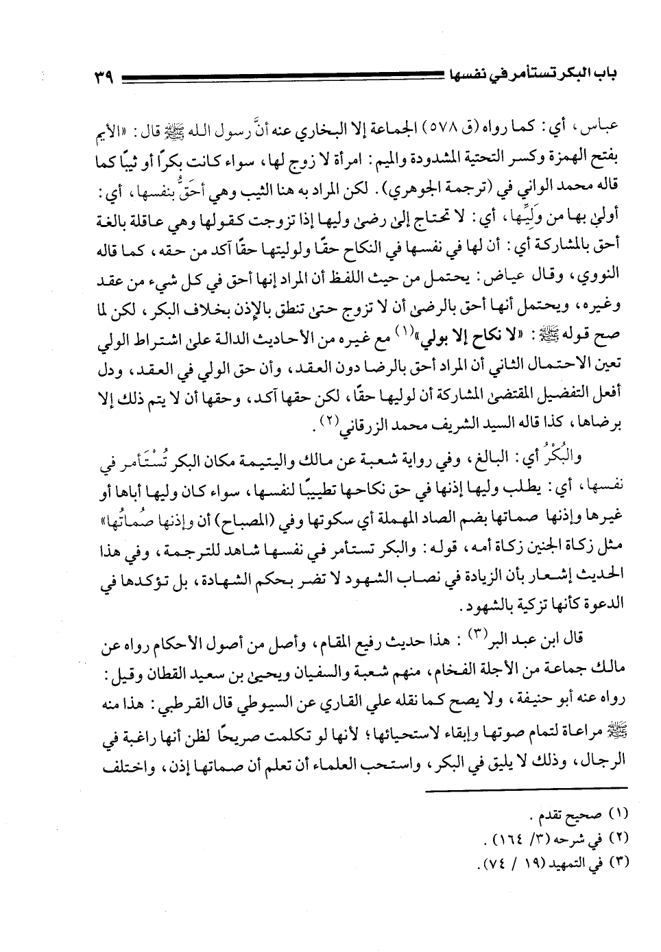 قال ابن عبد البر (¬3): هذا حديث رفيع المقام، وأصل من أصول الأحكام رواه عن مالك جماعة من الأجلة الفخام، منهم شعبة والسفيان ويحيى بن سعيد القطان وقيل: رواه عنه أبو حنيفة، ولا يصح كما نقله علي القاري عن السيوطي قال القرطبي: هذا منه - صلى الله عليه وسلم - مراعاة لتمام صوتها وإبقاء لاستحيائها؛ لأنها لو تكلمت صريحًا لظن أنها راغبة في الرجال، وذلك لا يليق في البكر، واستحب العلماء أن تعلم أن صماتها إذن، واختلف