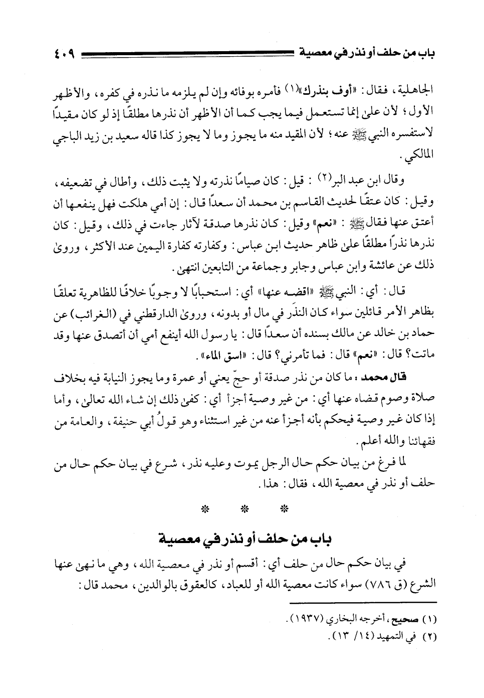 باب من حلف أو نذر في معصية