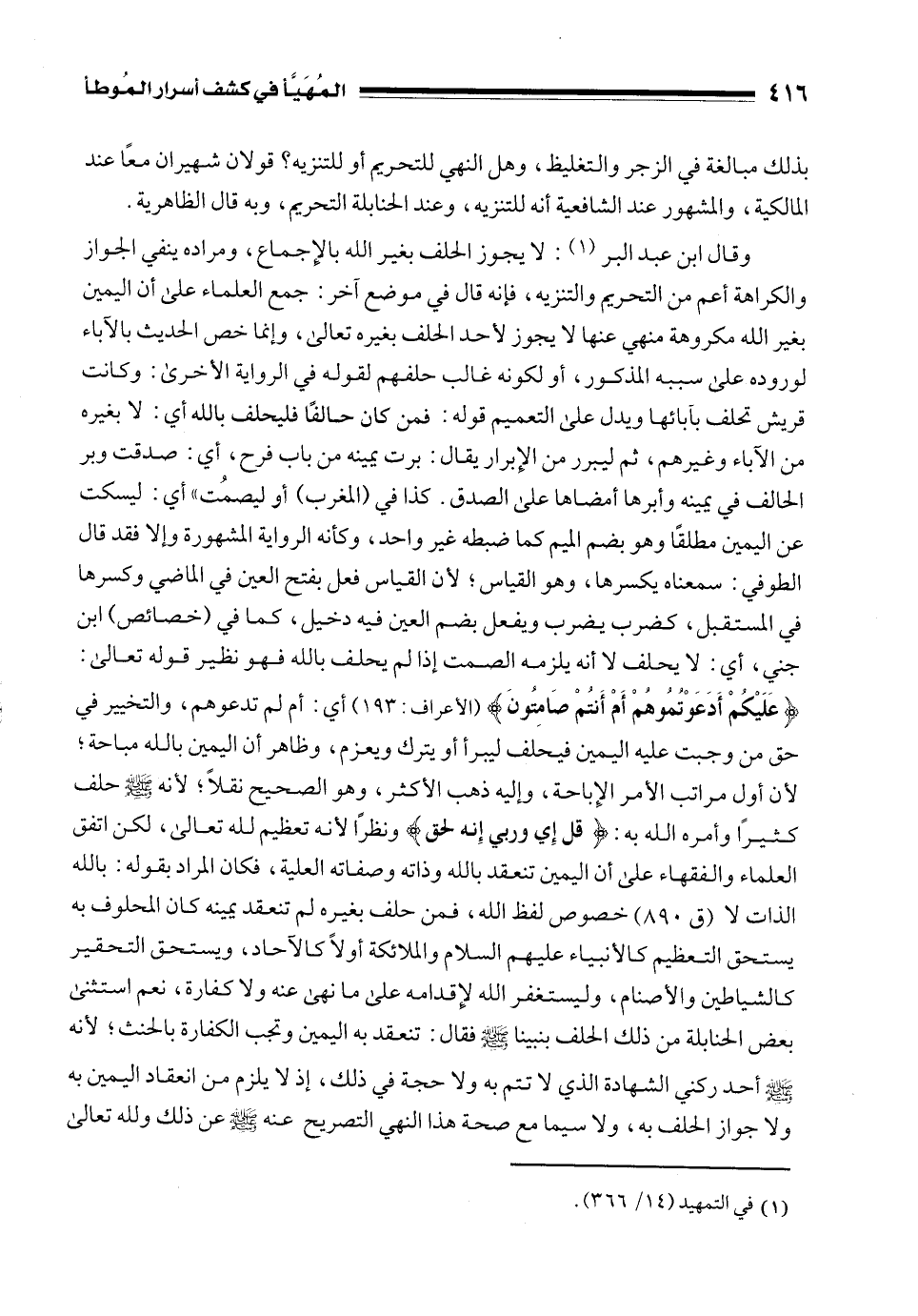 وقال ابن عبد البر (¬1): لا يجوز الحلف بغير الله بالإِجماع، ومراده ينفي الجواز والكراهة أعم من التحريم والتنزيه، فإنه قال في موضع آخر: جمع العلماء على أن اليمين بغير الله مكروهة منهي عنها لا يجوز لأحد الحلف بغيره تعالى، وإنما خص الحديث بالآباء لوروده على سببه المذكور، أو لكونه غالب حلفهم لقوله في الرواية الأخرى: وكانت قريش تحلف بآبائها ويدل على التعميم قوله: فمن كان حالفًا فليحلف بالله أي: لا بغيره من الآباء وغيرهم، ثم ليبرر من الإِبرار يقال: برت يمينه من باب فرح، أي صدقت وبر الحالف في يمينه وأبرها أمضاها على الصدق. كذا في (المغرب) أو ليصمُت" أي: ليسكت عن اليمين مطلقًا وهو بضم الميم كما ضبطه غير واحد، وكأنه الرواية المشهورة وإلا فقد قال الطوفي: سمعناه يكسرها، وهو القياس؛ لأن القياس فعل بفتح العين في الماضي وكسرها في المستقبل، كضرب يضرب ويفعل بضم العين فيه دخيل، كما في (خصائص) ابن جني، أي: لا يحلف لا أنه يلزمه الصمت إذا لم يحلف بالله فهو نظير قوله تعالى: {عَلَيْكُمْ أَدَعَوْتُمُوهُمْ أَمْ أَنْتُمْ صَامِتُونَ} [الأعراف: 193] أي: أم لم تدعوهم، والتخيير في حق من وجبت عليه اليمين فيحلف ليبرأ أو يترك ويعزم، وظاهر أن اليمين بالله مباحة؛ لأن أول مراتب الأمر الإِباحة، وإليه ذهب الأكثر، وهو الصحيح نقلًا؛ لأنه - صلى الله عليه وسلم - حلف كثيرًا وأمره الله به: {قُلْ إِي وَرَبِّي إِنَّهُ لَحَقٌّ} ونظرًا لأنه تعظيم لله تعالى، لكن اتفق العلماء والفقهاء على أن اليمين تنعقد بالله وذاته وصفاته العلية، فكان المراد بقوله: بالله الذات لا (ق 890) خصوص لفظ الله، فمن حلف بغيره لم تنعقد يمينه كان المحلوف به يستحق التعظيم كالأنبياء عليهم السلام والملائكة أولًا كالآحاد، ويستحق التحقير كالشياطين والأصنام، وليستغفر الله لإِقدامه على ما نهى عنه ولا كفارة، نعم استثنى بعض الحنابلة من ذلك الحلف بنبينا - صلى الله عليه وسلم - فقال: تنعقد به اليمين وتجب الكفارة بالحنث؛ لأنه - صلى الله عليه وسلم - أحد ركني الشهادة الذي لا تتم به ولا حجة في ذلك، إذ لا يلزم من انعقاد اليمين به ولا جواز الحلف به، ولا سيما مع صحة هذا النهي التصريح عنه - صلى الله عليه وسلم - جيد عن ذلك ولله تعالى