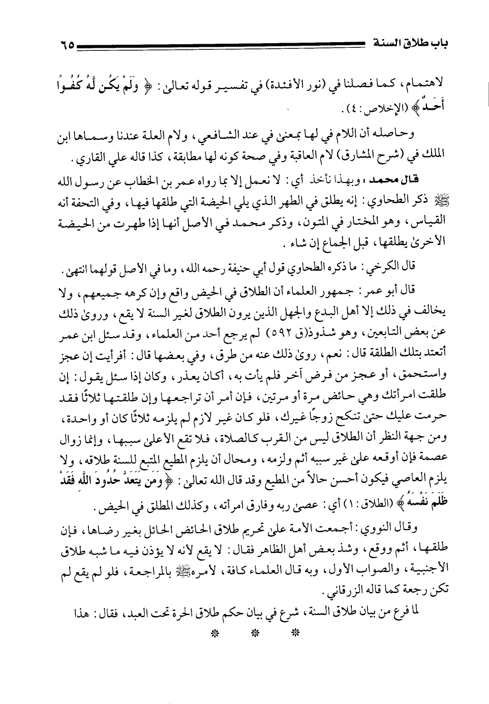 وقال النووي: أجمعت الأمة على تحريم طلاق الحائض الحائل بغير رضاها، فإن طلقها، أثم ووقع، وشذ بعض أهل الظاهر فقال: لا يقع لأنه لا يؤذن فيه ما شبه طلاق الأجنبية، والصواب الأول، وبه قال العلماء كافة، لأمره - صلى الله عليه وسلم - بالمراجعة، فلو لم يقع لم تكن رجعة كما قاله الزرقاني.