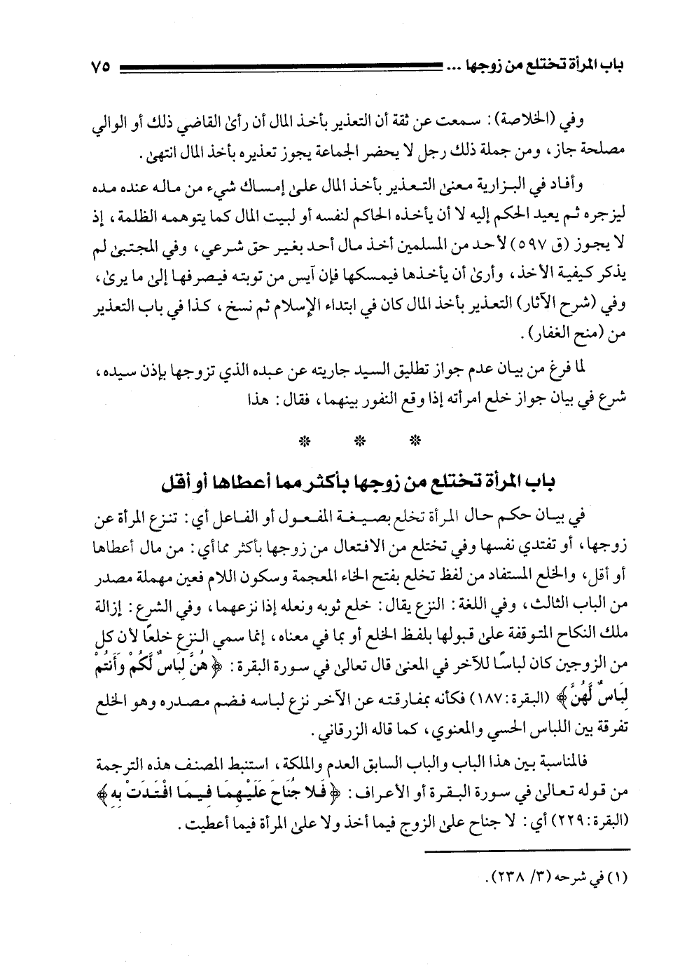 فالمناسبة بين هذا الباب والباب السابق العدم والملكة، استنبط المصنف هذه الترجمة من قوله تعالى في سورة البقرة أو الأعراف: {فَلَا جُنَاحَ عَلَيْهِمَا فِيمَا افْتَدَتْ بِهِ} [البقرة: 229] أي: لا جناح على الزوج فيما أخذ ولا على المرأة فيما أعطيت.