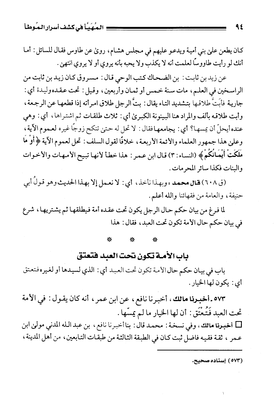 • أخبرنا مالك، وفي نسخة: محمد قال: بنا أخبرنا نافع، بن عبد الله المدني مولى ابن عمر، ثقة فقيه فاضل ثبت كان في الطبقة الثالثة من طبقات التابعين، من أهل المدينة،