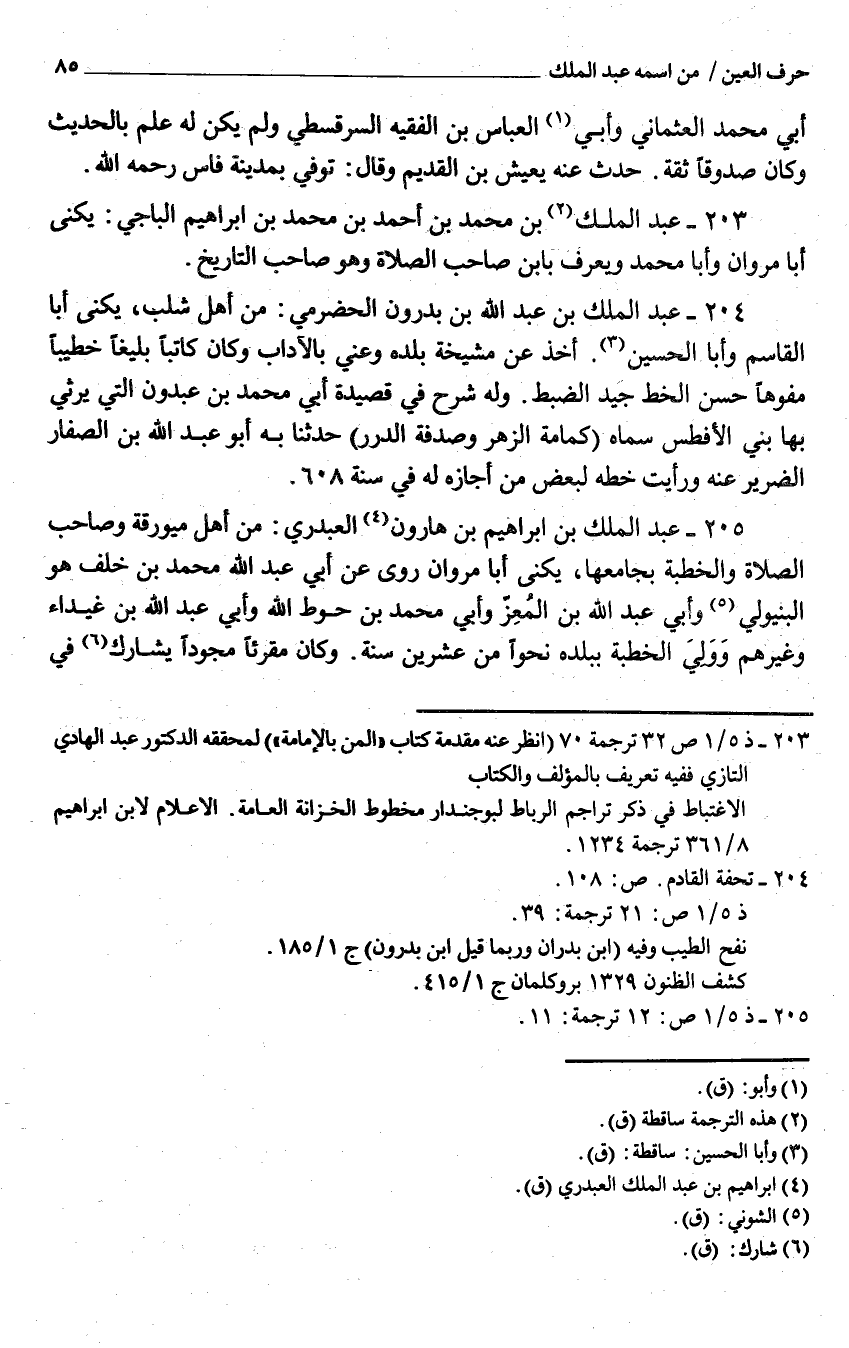 203 - عبد الْملك بن مُحَمَّد بْن أَحْمَد بْن مُحَمَّد بن إِبْرَاهِيم الْبَاجِيّ يكنى أَبَا مَرْوَان وَأَبا مُحَمَّد وَيعرف بِابْن صَاحب الصَّلَاة وَهُوَ صَاحب التَّارِيخ