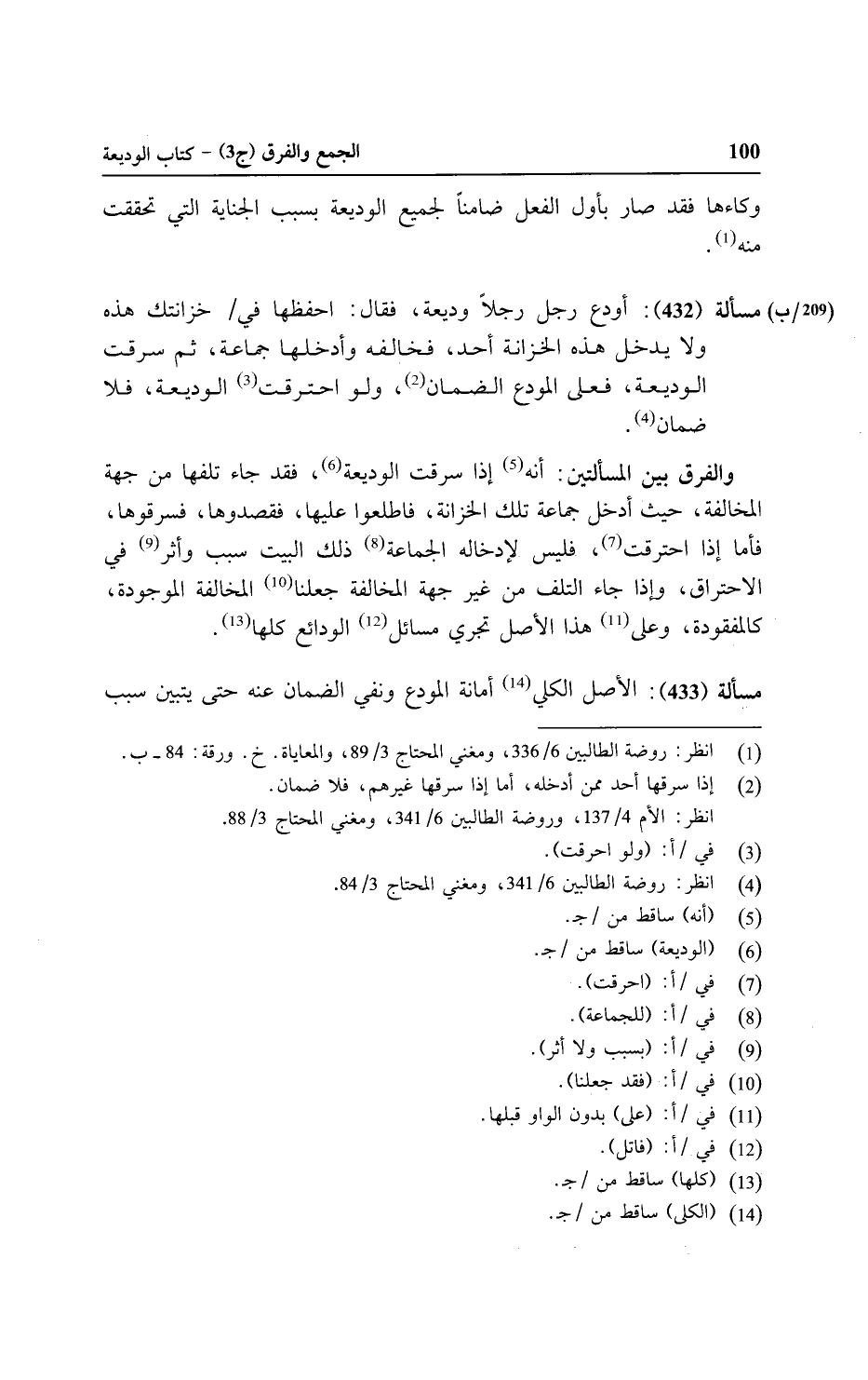 مسألة (٤٣٣): الأصل الكلي أمانة المودع ونفي الضمان عنه حتى يتبين سبب