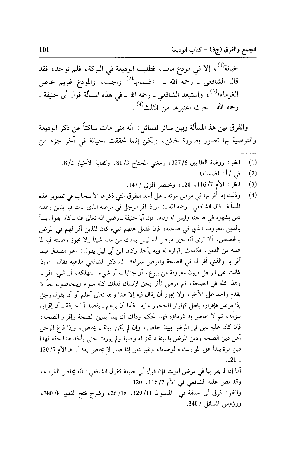 والفرق بين هذه المسألة وبين سائر المسائل: أنه متى مات ساكتًا عن ذكر الوديعة والتوصية بها تصور بصورة خائن، ولكن إنما تحققت الخيانة في آخر جزء من