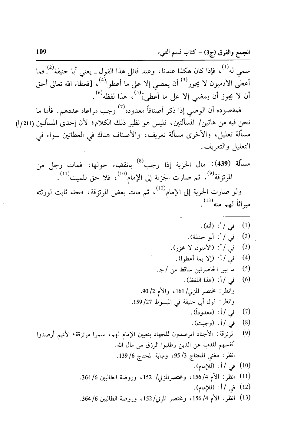 مسألة (٤٣٩): مال الجزية إذا وجب بانقضاء حولها، فمات رجل من المرتزقة، ثم صارت الجزية إلى الإمام، فلا حق للميت.