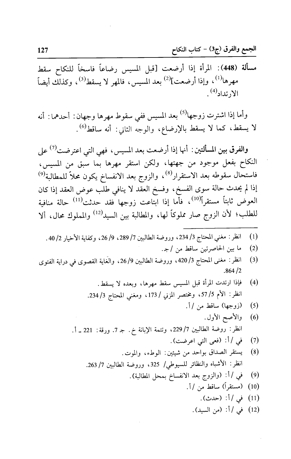 مسألة (٤٤٨): المرأة إذا أرضعت [قبل المسيس رضاعًا فاسخًا للنكاح سقط مهرها، وإذا أرضعت] بعد المسيس، فالمهر لا يسقط، وكذلك أيضًا الارتداد.
