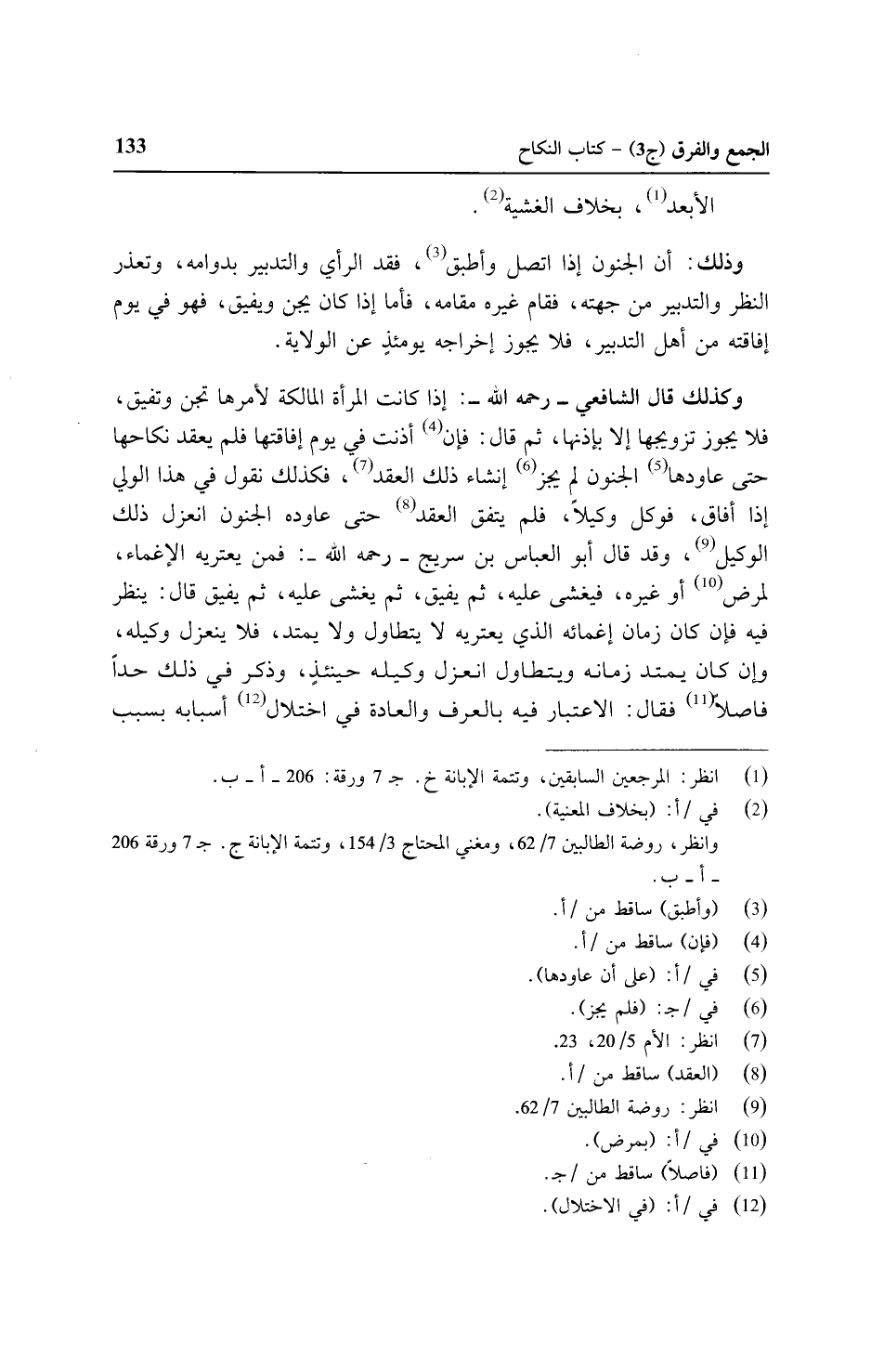 وكذلك قال الشافعي - رحمه الله -: إذا كانت المرأة المالكة لأمرها تجن وتفيق، فلا يجوز تزويجها إلا بإذنها، ثم قال: فإن أذنت في يوم إفاقتها فلم يعقد نكاحها حتى عاودها الجنون لم يجز إنشاء ذلك العقد، فكذلك نقول في هذا الولي إذا أفاق، فوكل وكيلًا، فلم يتفق العقد حتى عاوده الجنون انعزل ذلك الوكيل، وقد قال أبو العباس بن سريج - رحمه الله-: فمن يعتريه الإغماء، لمرض أو غيره، فيغشى عليه، ثم يفيق، ثم يغشى عليه، ثم يفيق قال: ينظر فيه فإن كان زمان إغمائه الذي يعتريه لا يتطاول ولا يمتد، فلا ينعزل وكيله، وإن كان يمتد زمانه ويتطاول انعزل وكيله حينئذٍ، وذكر في ذلك حدًا فاصلًا فقال: الاعتبار فيه بالعرف والعادة في اختلال أسبابه بسبب