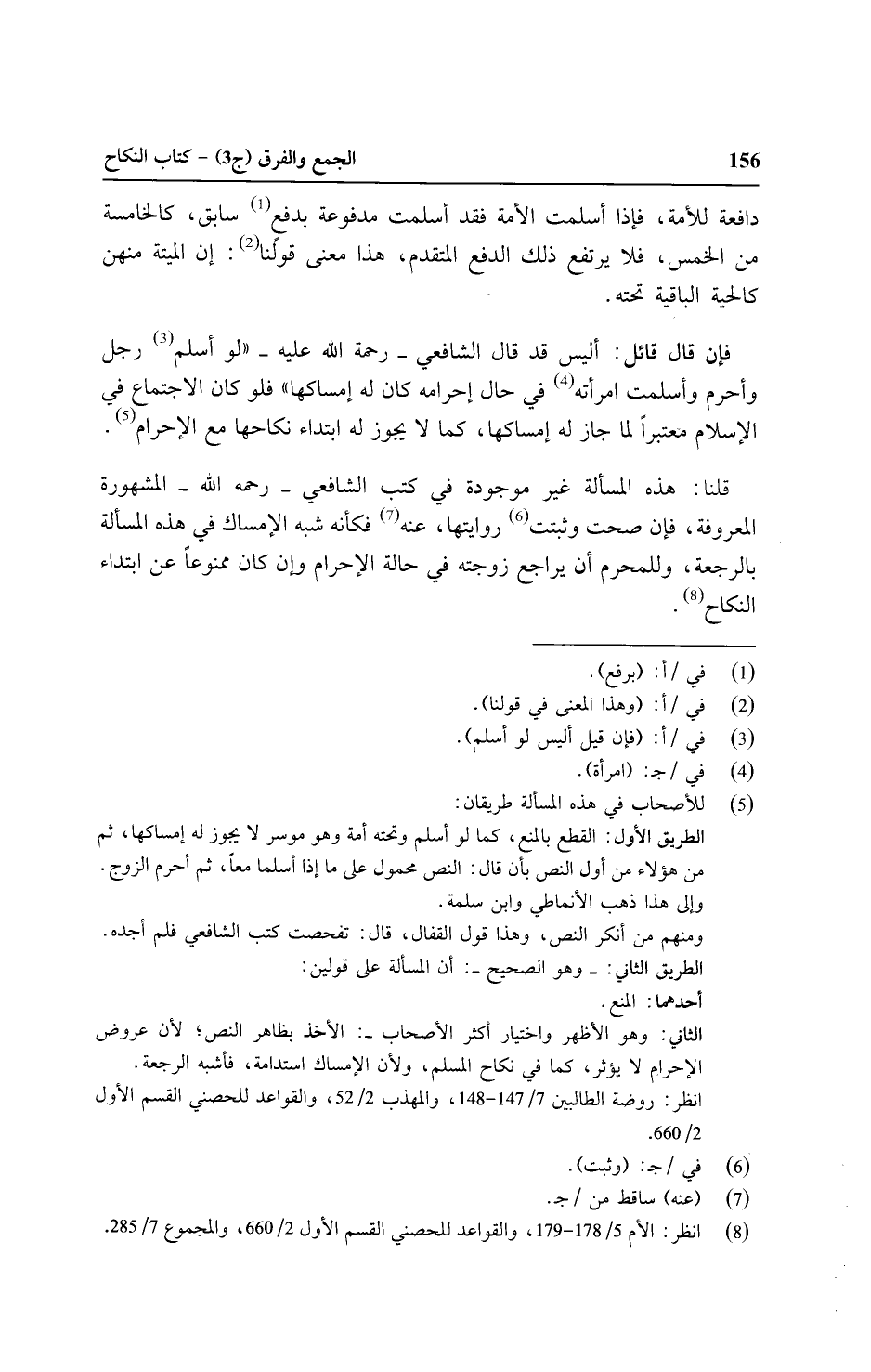 دافعة للأمة، فإذا أسلمت الأمة فقد أسلمت مدفوعة بدفع سابق، كالخامسة من الخمس، فلا يرتفع ذلك الدفع المتقدم، هذا معنى قولنا: إن الميتة منهن كالحية الباقية تحته.