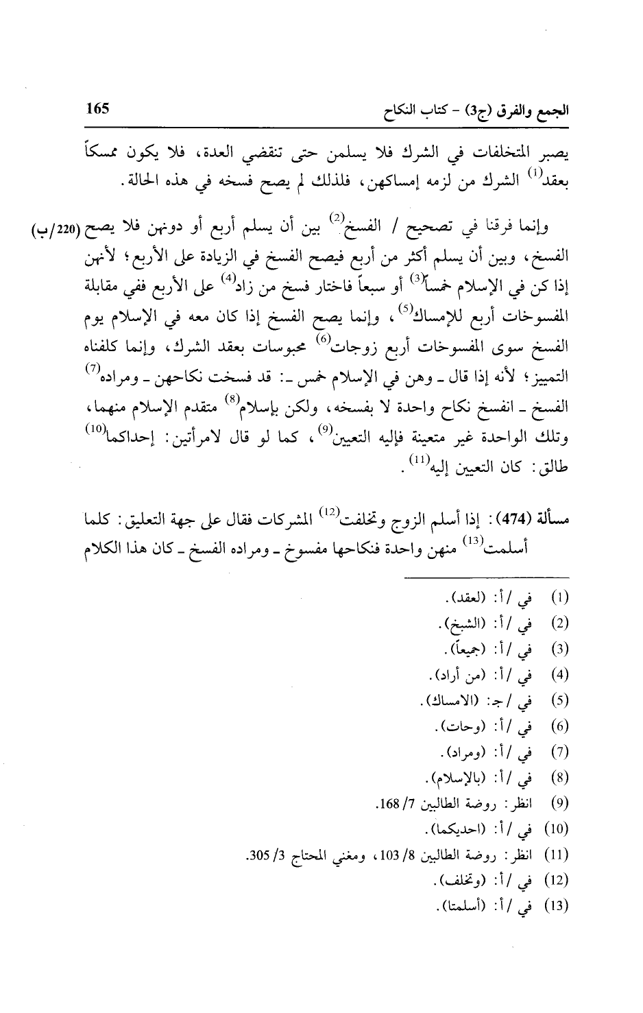 مسألة (٤٧٤): إذا أسلم الزوج وتخلفت المشركات فقال على جهة التعليق: كلما أسلمت منهن واحدة فنكاحها مفسوخ -ومراده الفسخ - كان هذا الكلام