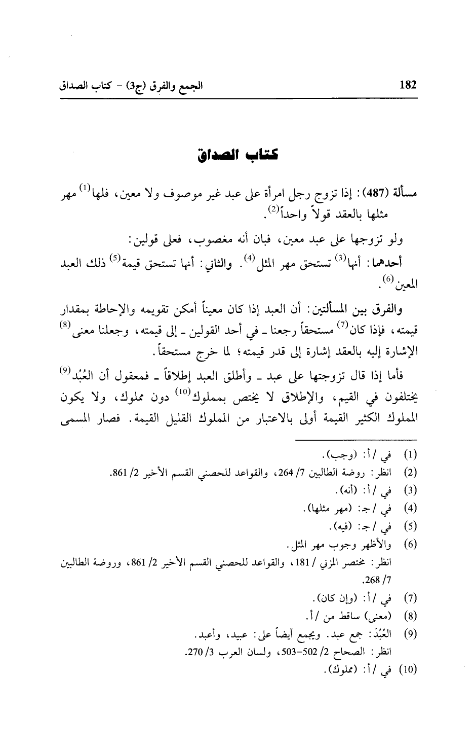 فأما إذا قال تزوجتها على عبد - وأطلق العبد إطلاقاً- فمعقول أن العبد يختلفون في القيم، والإطلاق لا يختص بمملوك دون مملوك، ولا يكون المملوك الكثير القيمة أولى بالاعتبار من المملوك القليل القيمة. فصار المسمى