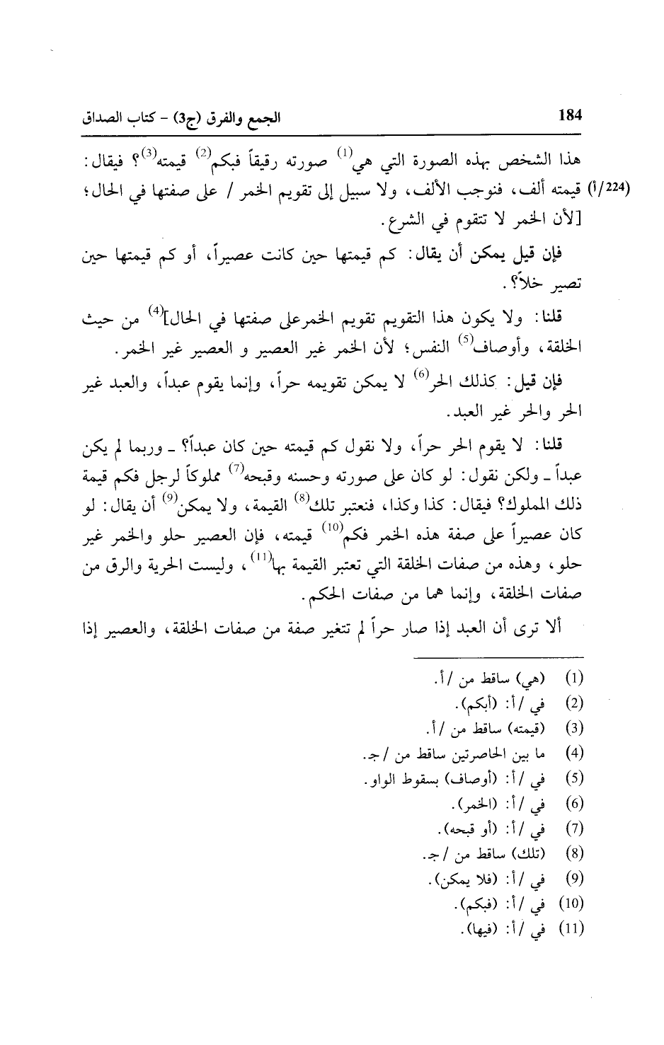 قلنا: ولا يكون هذا التقويم تقويم الخمر على صفتها في الحال] من حيث الخلقة، وأوصاف النفس لأن الخمر غير العصير والعصير غير الخمر.