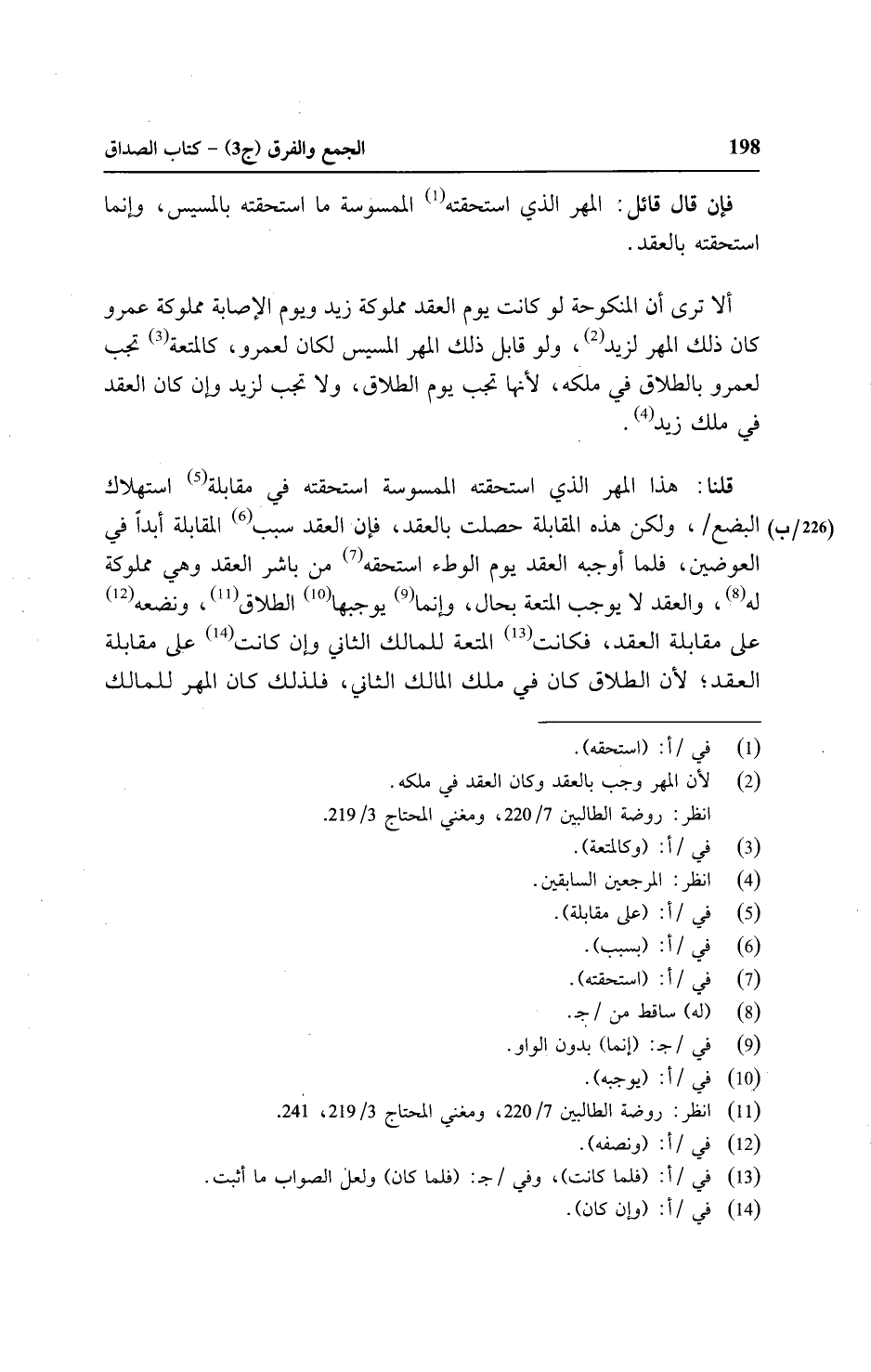 ألا ترى أن المنكوحة لو كانت يوم العقد مملوكة زيد ويوم الإصابة مملوكة عمرو كان ذلك المهر لزيد, ولو قابل ذلك المهر المسيس لكان لعمرو, كالمتعة تجب لعمرو بالطلاق في ملكه, لأنها تجب يوم الطلاق, ولا تجب لزيد وإن كان العقد في ملك زيد.