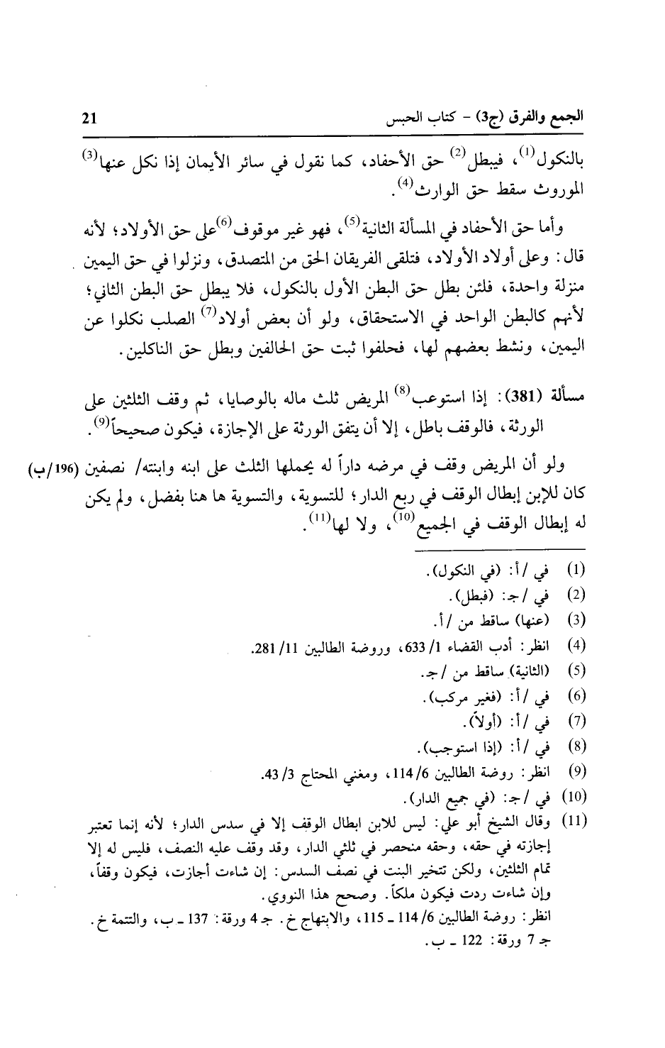 وأما حق الأحفاد في المسألة الثانية، فهو غير موقوف على حق الأولاد؛ لأنه قال: وعلى أولاد الأولاد، فتلقى الفريقان الحق من المتصدق، ونزلوا في حق اليمين منزلة واحدة، فلئن بطل حق البطن الأول بالنكول، فلا يبطل حق البطن الثاني؛ لأنهم كالبطن الواحد في الاستحقاق، ولو أن بعض أولاد الصلب نكلوا عن اليمين، ونشط بعضهم لها، فحلفوا ثبت حق الحالفين وبطل حق الناكلين.