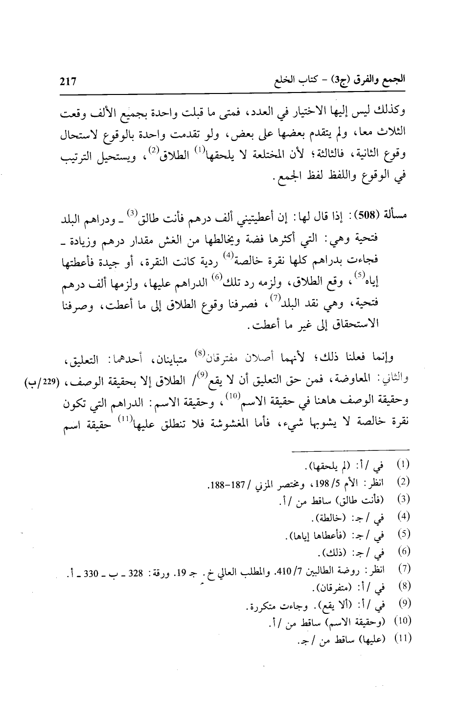 مسألة (٥٠٨): إذا قال لها: إن أعطيتني ألف درهم فأنت طالق - ودراهم البلد فتحية وهي: التي أكثرها فضة ويخالطها من الغش مقدار درهم وزيادة - فجاءت بدراهم كلها نقرة خالصة ردية إذا كانت النقرة, أو جيدة فأعطتها إياه, وقع الطلاق, ولزمه رد تلك الدراهم عليها, ولزمها ألف درهم فتحية, وهي نقد البلد, فصرفنا وقوع الطلاق إلى ما أعطت, وصرفنا الاستحقاق إلى غير ما أعطيت. ك