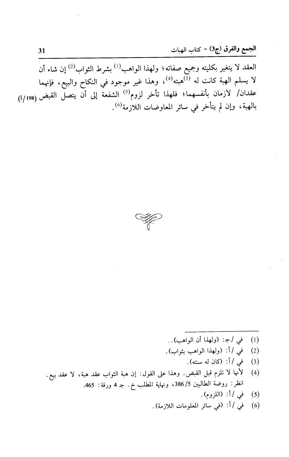 العقد لا يتغير بكليته وجميع صفاته؛ ولهذا الواهب بشرط الثواب إن شاء أن لا يسلم الهبة كانت له هبته, وهذا غير موجود في النكاح والبيع, فإنهما عقدان/ (١٩٨/ب) لا زمان بأنفسهما؛ فلهذا تأخر لزوم الشفعة إلى أن يتصل القبض بالهبة, وإن لم يتأخر في سائر المعاوضات اللازمة.