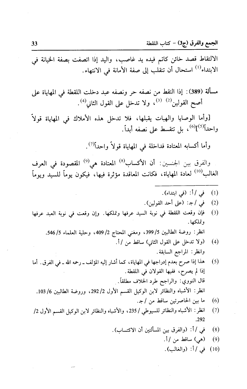مسألة (٣٨٩): إذا التقط من نصفه حر ونصفه عبد دخلت اللقطة في المهاياة على أصح القولين, ولا تدخل على القول الثاني.