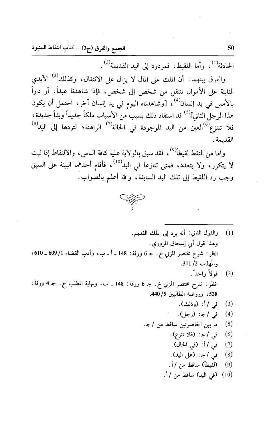 والفرق بينهما: أن الملك على المال لا يزال على الانتقال, وكذلك الأيدي الثابتة على الأموال تنتقل من شخص إلى شخص, فإذا شاهدنا عبدًا, أو دارًا بالأمس في يد إنسان,] وشاهدناه اليوم في يد إنسان آخر, احتمل أن يكون هذا الرجل الثاني [قد استفاد ذلك بسبب من الأسباب ملكًا جديدًا ويدًا جديدة, فلا تنتزع العين من اليد الموجودة في الحالة الراهنة؛ لتردها إلى اليد القديمة.