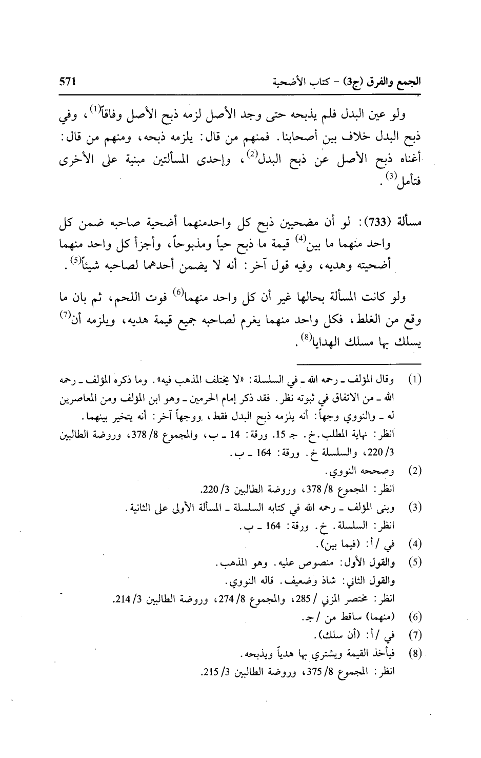 مسألة (٧٣٣): لو أن مضحيين ذبح كل واحد منهما أضحية صاحبة ضمن كل واحد منهما ما بين قيمة ما ذبح حيًا ومذبوحًا، وأجزأ كل واحد منهما أضحيته وهديه، وفيه قول آخر: أنه لا يضمن أحدهما لصاحبه شيئًا.