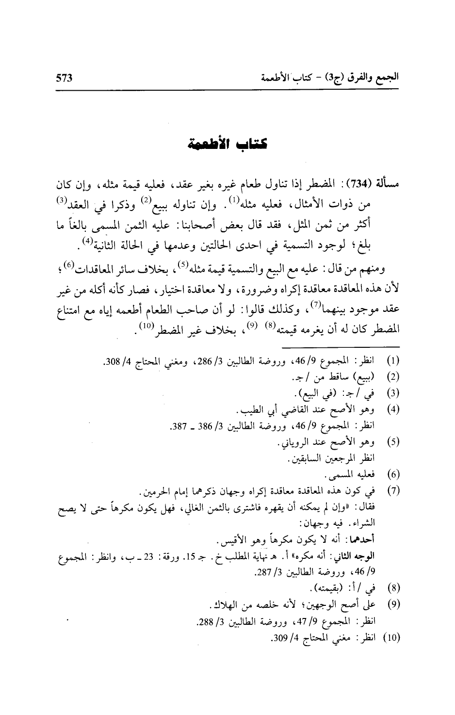 مسألة (٧٣٤): المضطر إذا تناول طعام غيره بغير عقد، فعليه قيمة مثله، وإن كان من ذوات الأمثال، فعليه مثل. وإن تناوله ببيع وذكرا في العقد أكثر من ثمن المثل، فقد قال بعض أصحابنا: عليه الثمن المسمى بالغًا ما بلغ؛ لوجود التسمية في إحدى الحالتين وعدمها في الحالة الثانية.